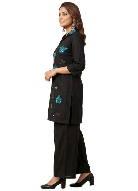 ₹1,700.00Original price was: ₹1,700.00.₹1,199.00Current price is: ₹1,199.00.PRODUCT NAME: Black Stylish Kurta and Pant Set FABRIC/MATERIAL: Cotton Blend LENGTH: Mid Thigh Length COLOR: Black with Teal Blue Embroidery FIT: Straight Fit DESIGN/STYLE: Trendy Kurta Set With Solid Bottom NECKLINE: Shirt Collar SLEEVE TYPE: Three-Quarter Sleeves PATTERN/PRINT: Solid OCCASION: Casual Wear, Office Wear, Festive Gatherings DESCRIPTION: Stylish black […]