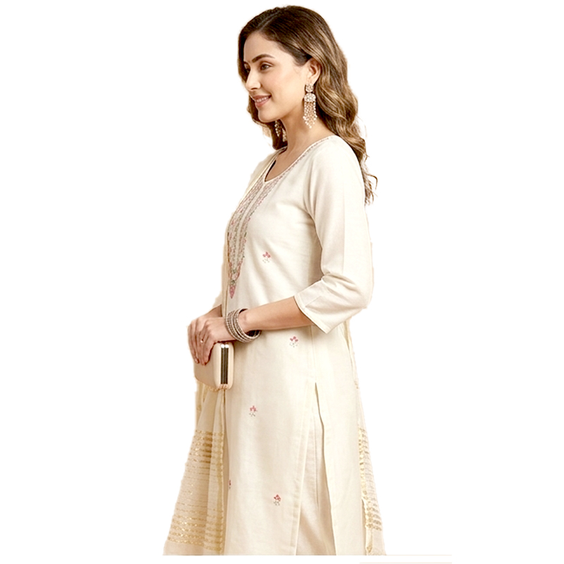 Product Name : Ethnic White Salwar Suit (Kurta, Pant & Dupatta)