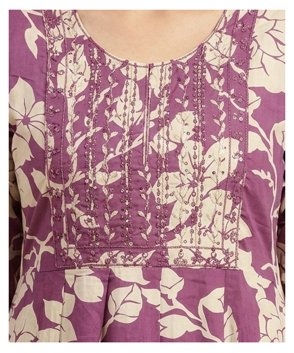 PRODUCT NAME: Purple Beige Floral Printed Anarkali Dress (only Top)